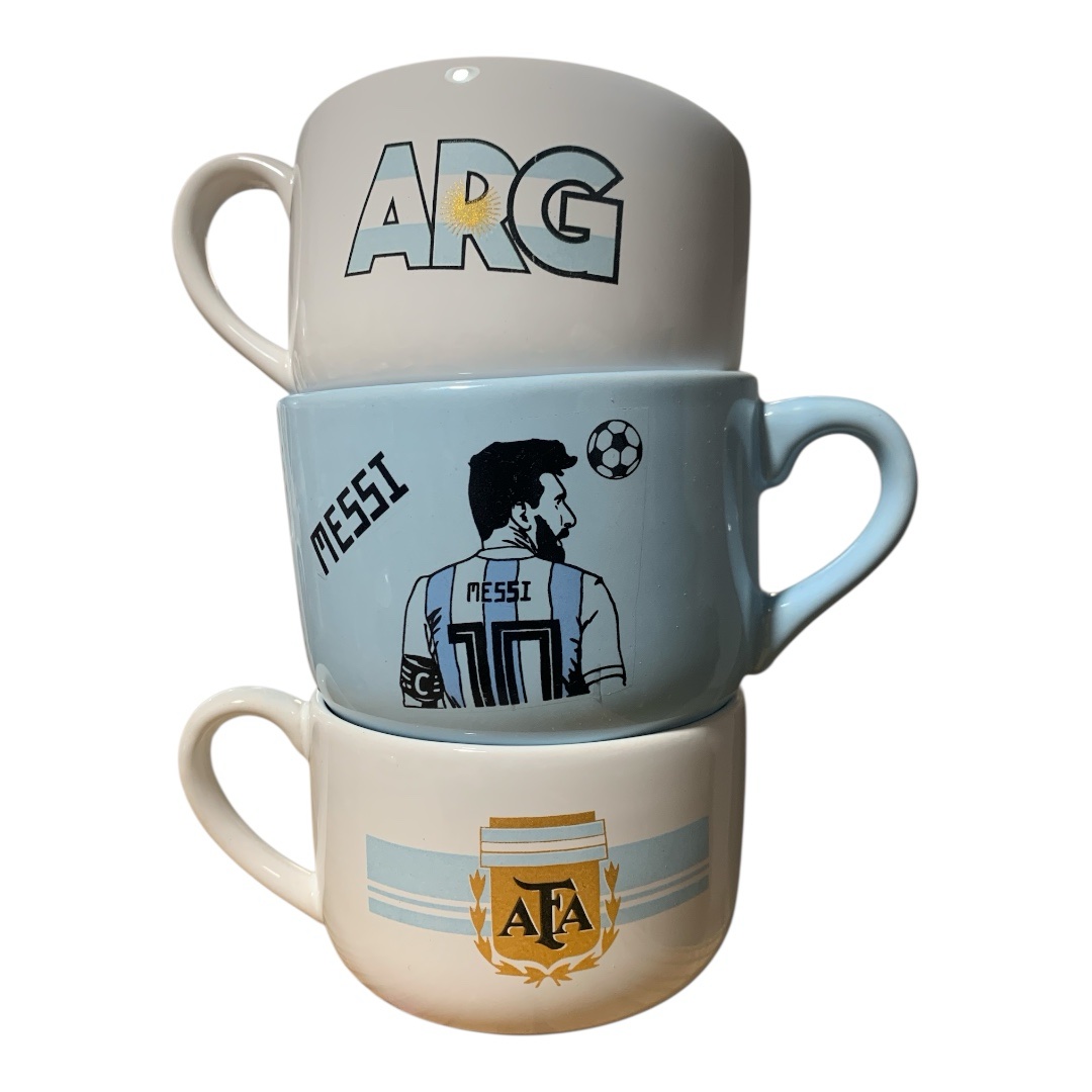 Pack conveniente Argentina (2 tazones Argentina + 1 celeste Messi )