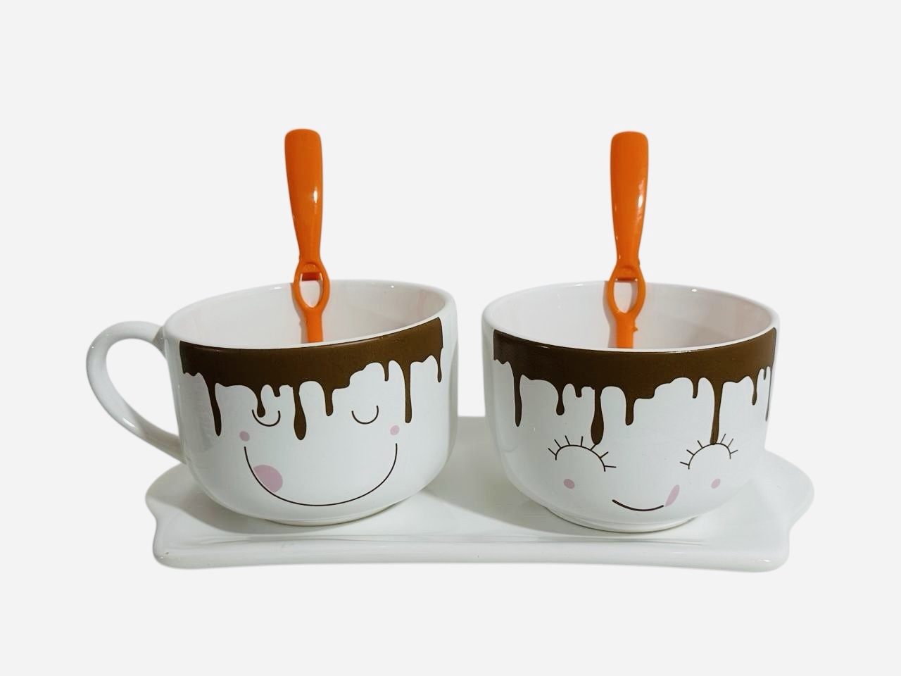 Set carita chocolatosa 5 piezas (tazon-bandeja-bowls-2 cucharas)