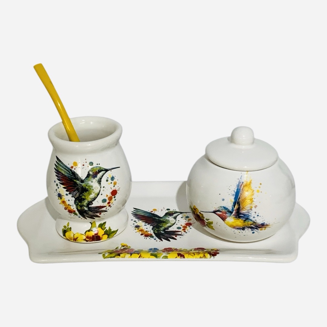Set Colibrí ( bandeja + mate con bombilla + azucarera )