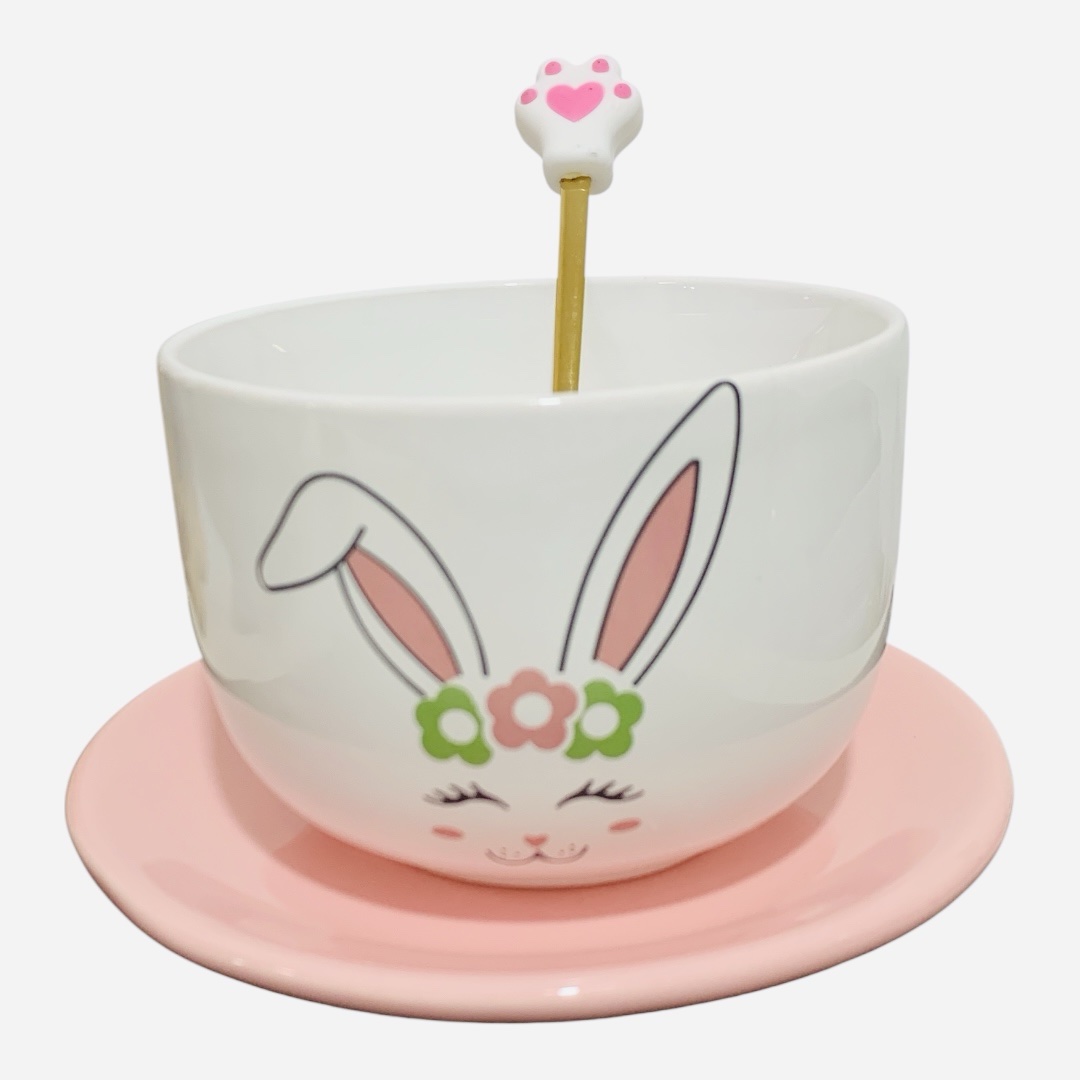 Set Coneja (plato rosa + bowls + cuchara 3D )