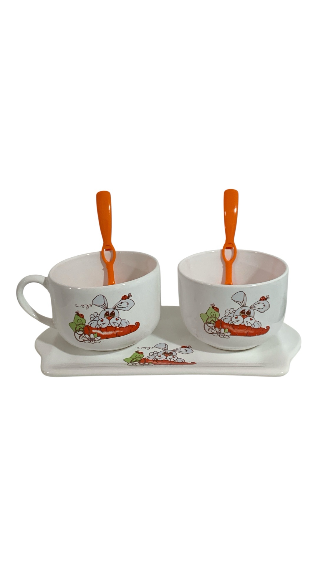 Set conejo zanahoria 5 piezas ( tazon-baneja-bowls-2 cucharas)