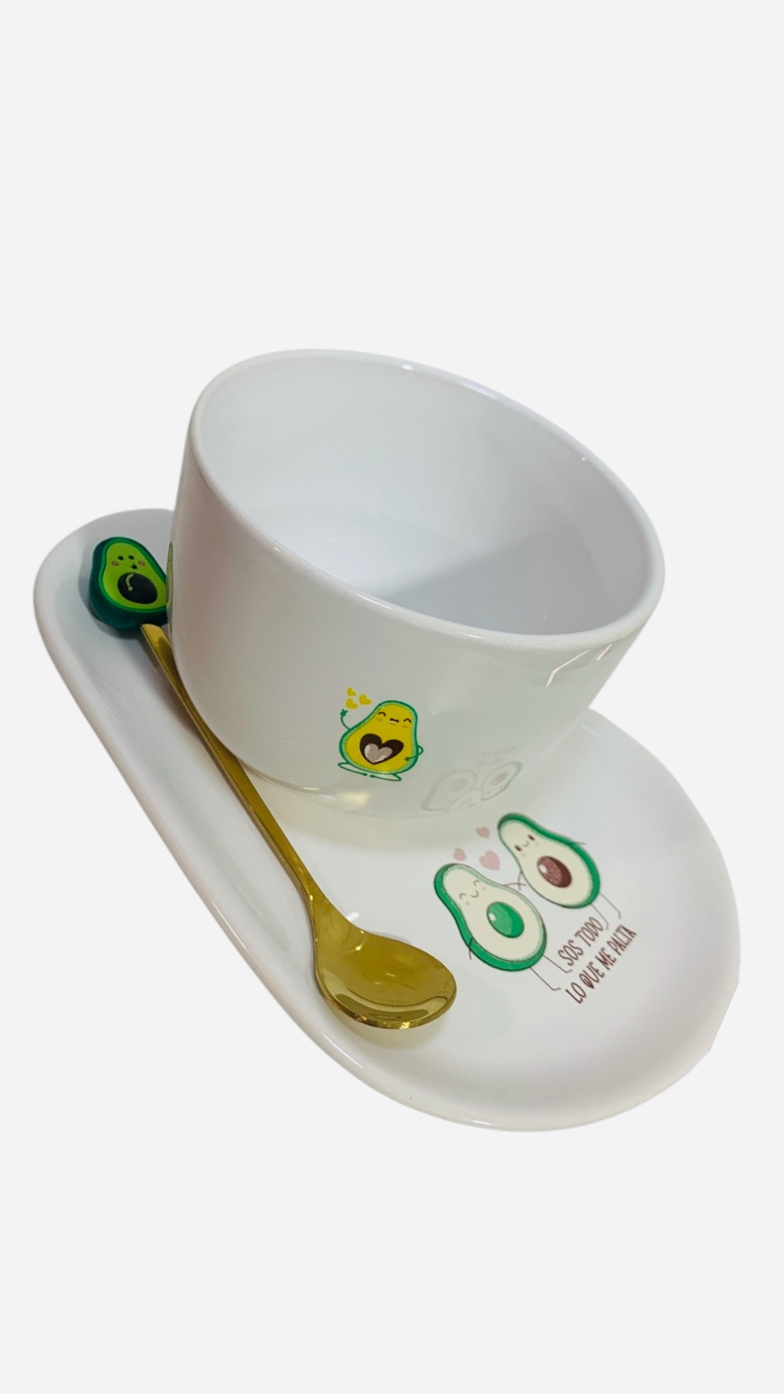 - Bowls blanco diseño alusivo paltas (8, 5 alto y 11 cm de boca). En caso de faltante enviamos tazon blanco.