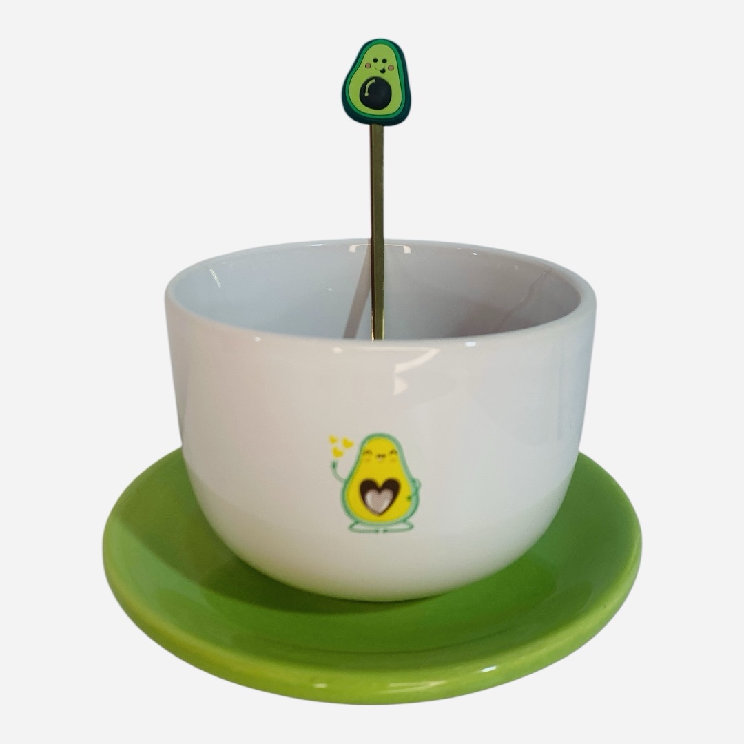 - bol blanco diseño alusivo paltas (8, 5 alto y 11 cm de boca)