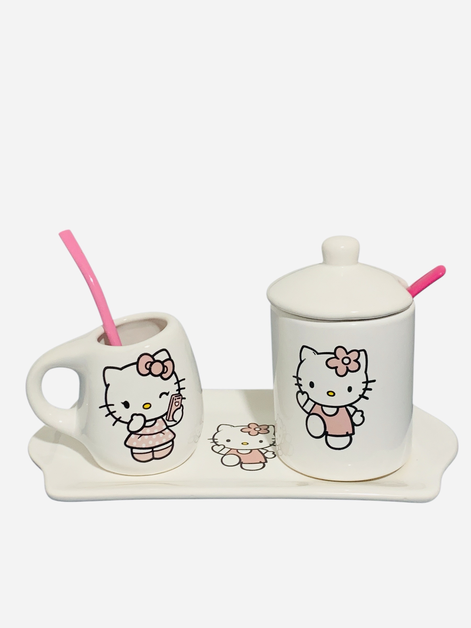 Set Kitty matero 5 piezas ( mate + azucarera+bandeja + cuchara+ bombilla)