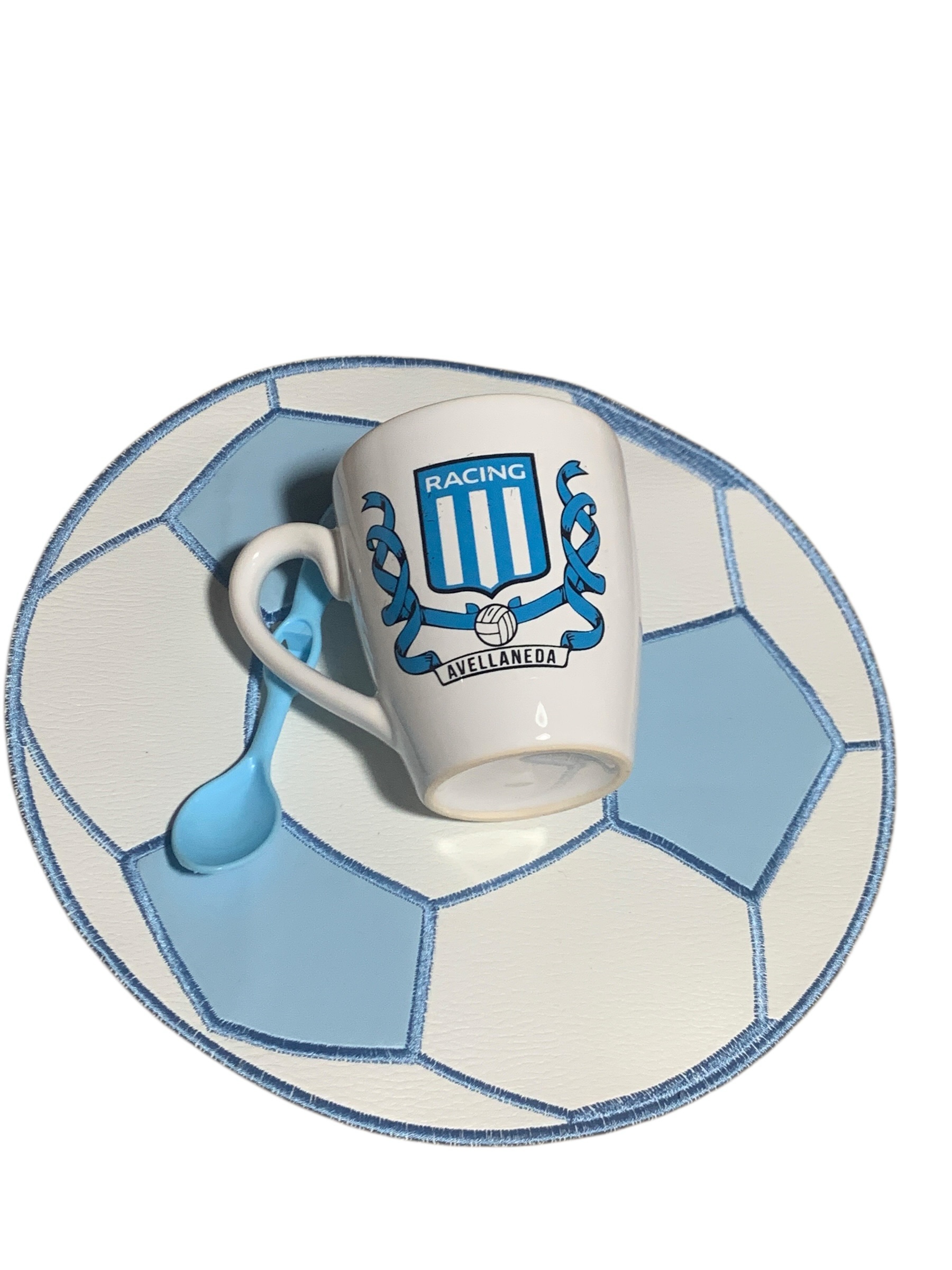 Set compuesto por taza-mantel y cuchara